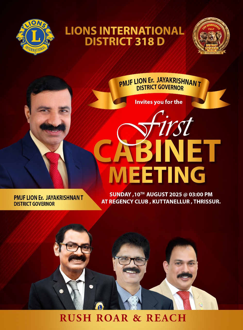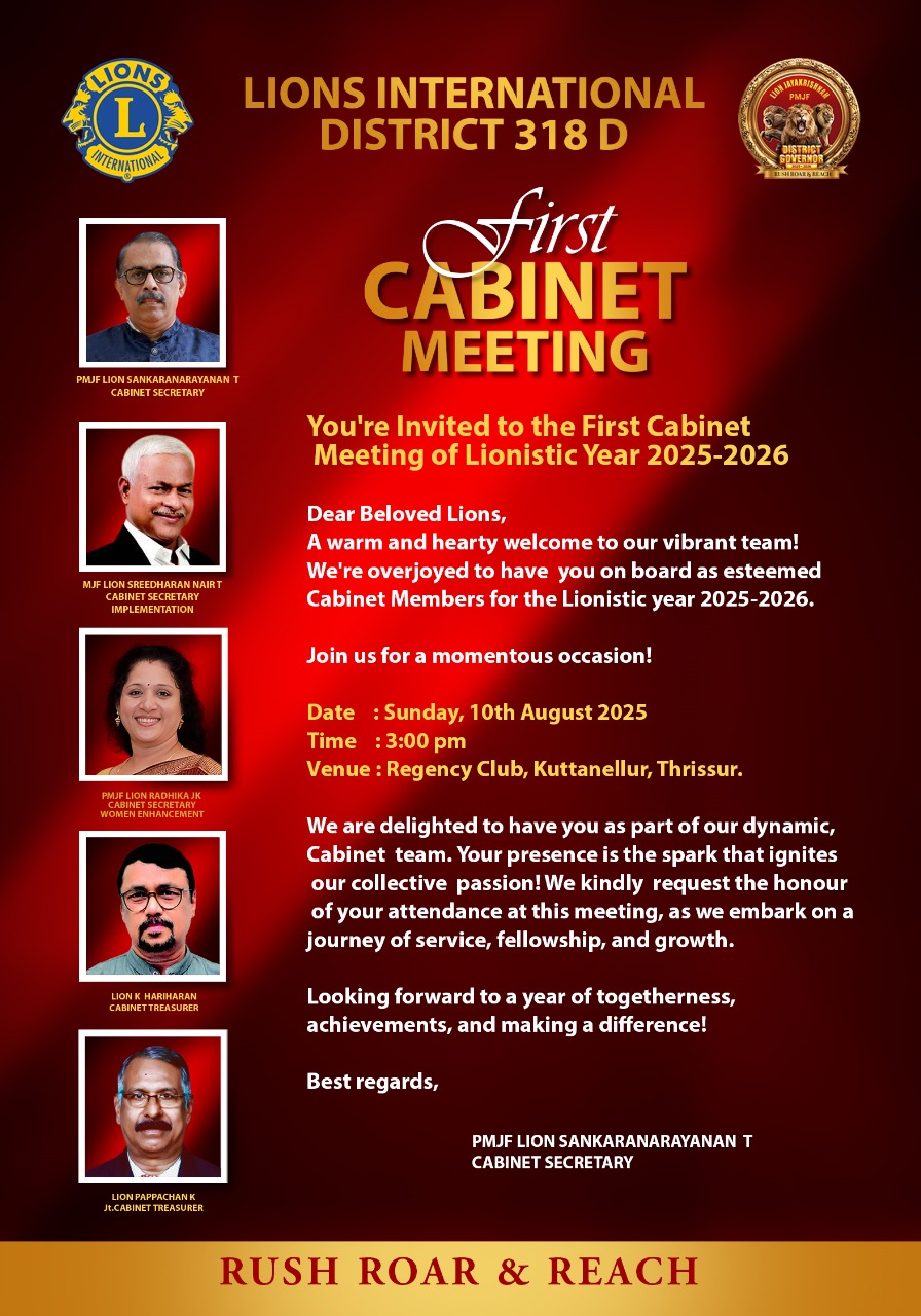 We invite you all for the first Cabinet Meeting to be held at Regency Auditorium, Kuttanellur, Thrissur